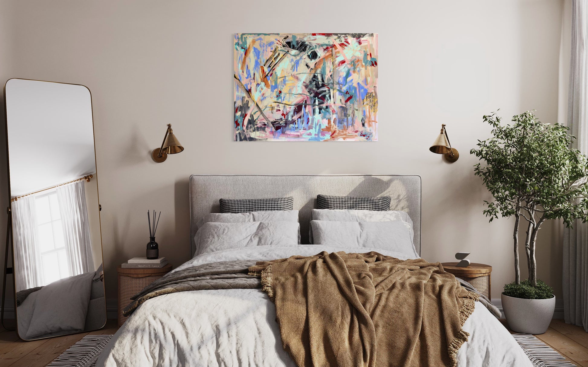 - Acrylic paint on stretched cotton canvas
